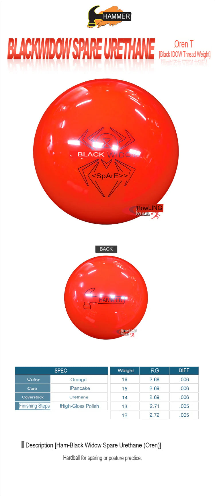 Hammer - Black Widow Spare Urethane Orange